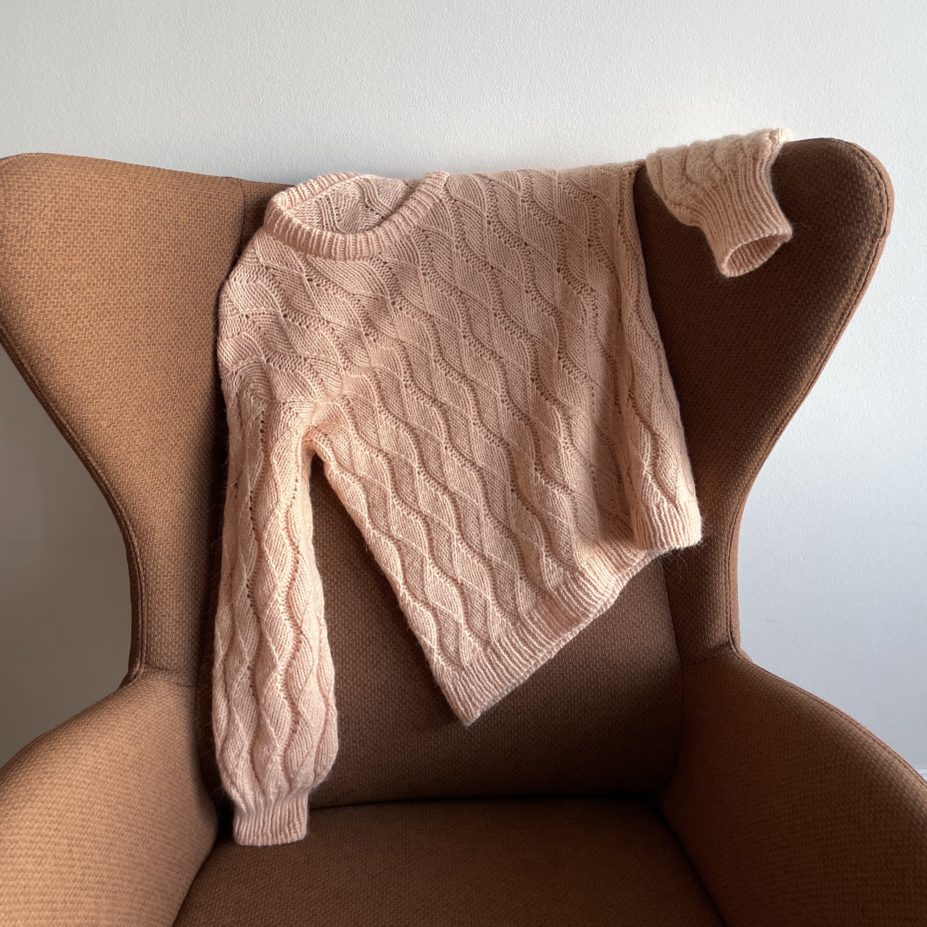 Kattegat Sweater er inspireret af havets rolige bevægelser og strikket med et enkelt, bølgende strukturmønster, der giver sweateren liv og karakter – uden at det bliver kompliceret.